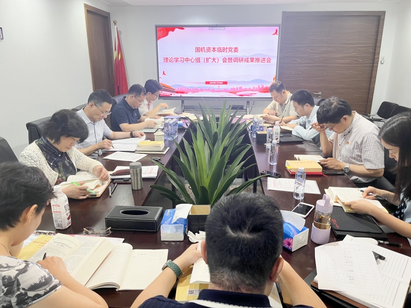 7月24日,國機資本臨時黨委組織召開理論學習中心組學習暨調研成果交流會,深入貫徹落實習近平新時代中國特色社會主義思想,全面落實習近平總書記關于調查研究的重要論述,交流研討調研成果,推動主題教育走深走實。集團主題教育第二巡回指導組成員王斌到會指導。國機資本臨時黨委書記、董事長、總經理趙建國,黨委委員、副總經理、財務總監杜彬,黨委委員、副總經理孫潤海,中層及以上黨員干部參加研討。
